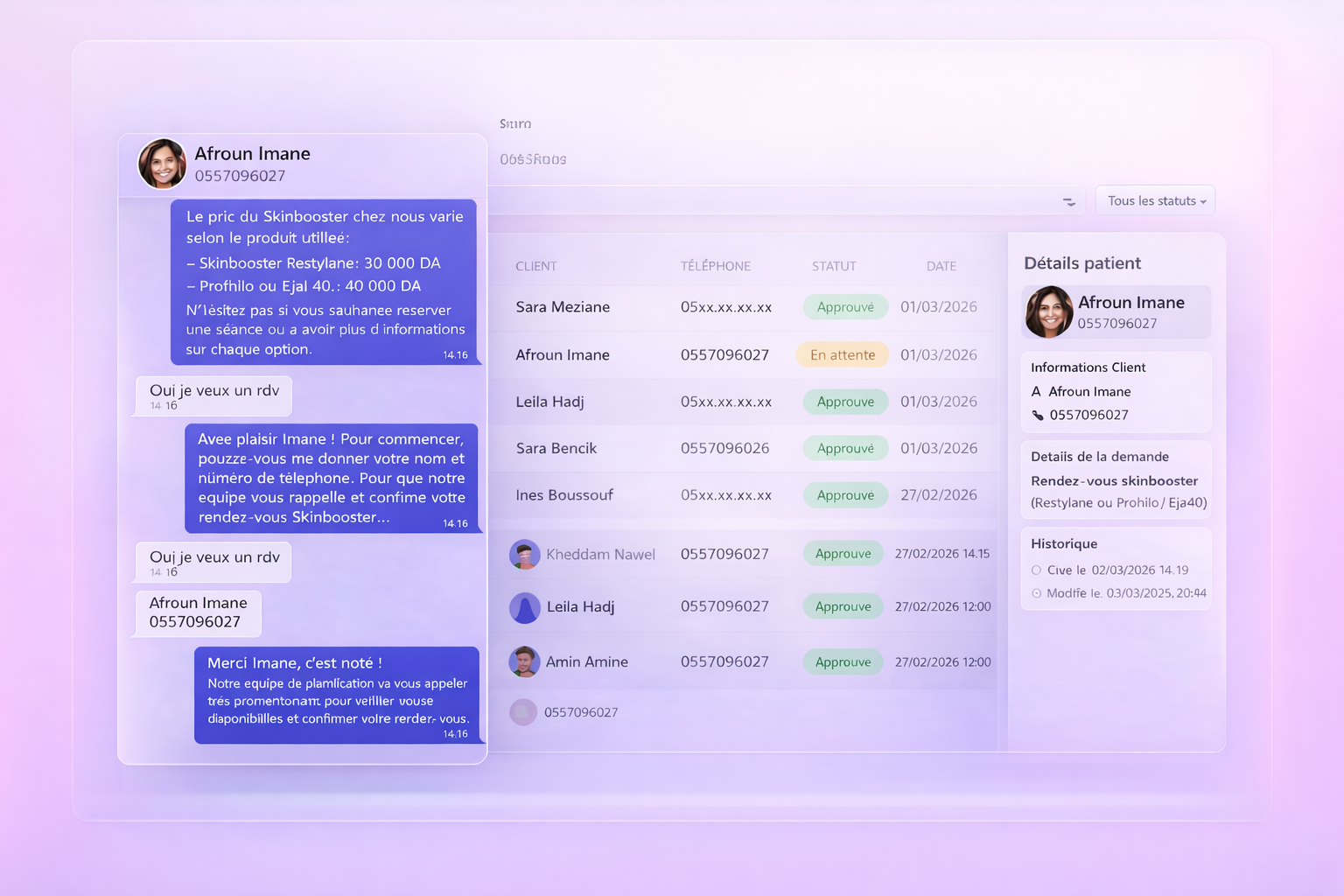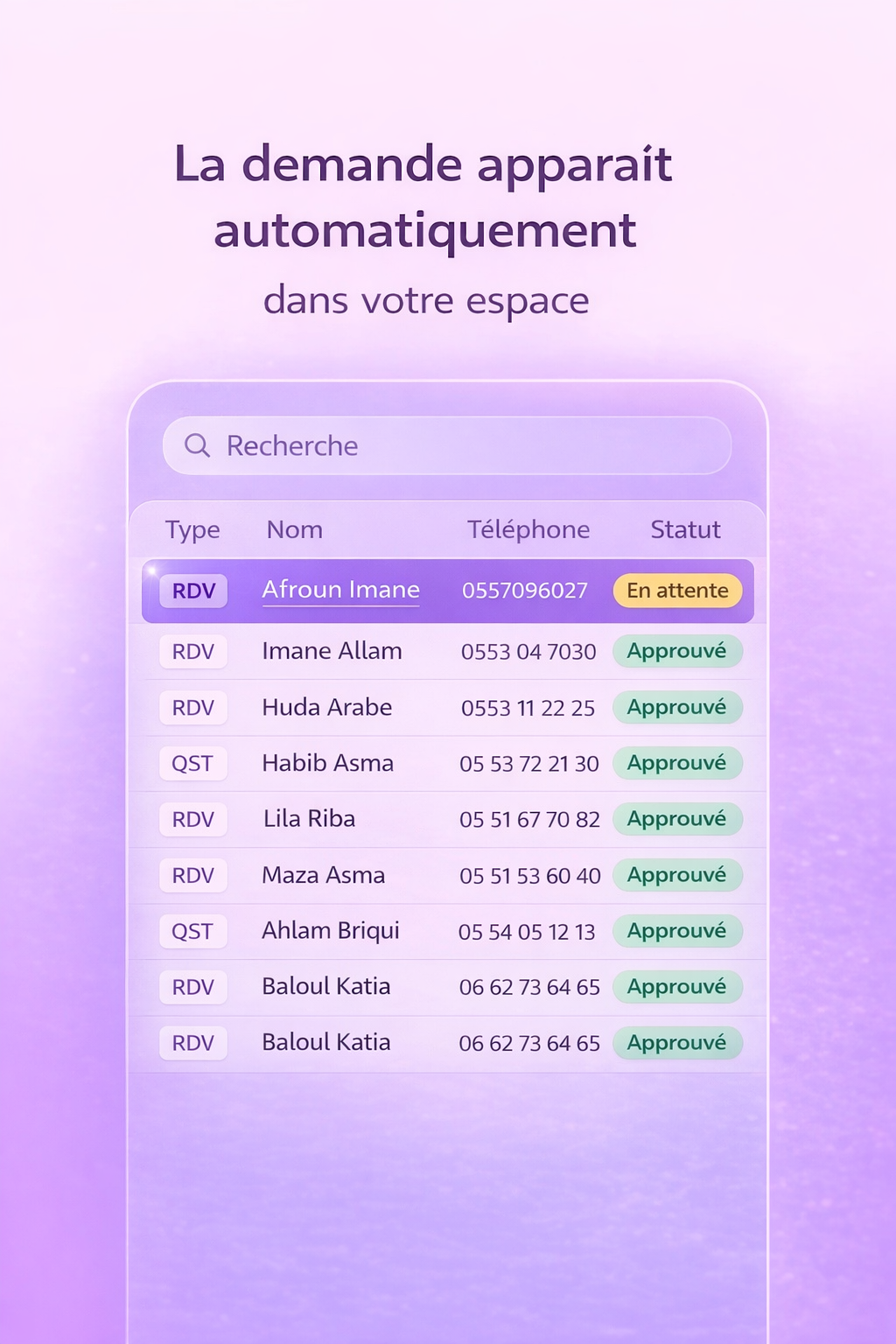 Gestion simplifiée des rendez-vous, et suivi des disponibilités.