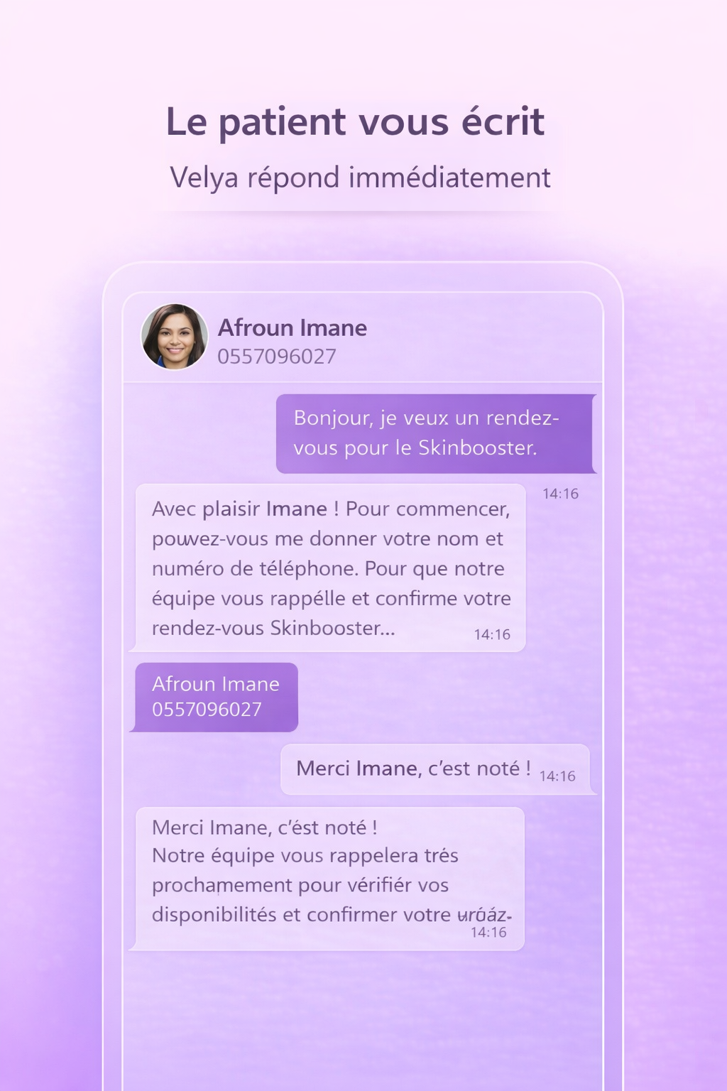 Chaque message reçoit une réponse claire et personnalisée.
